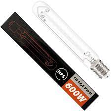 Lámpara de alta presión de sodio HPS de 600W para crecimiento y floración. Con un espectro donde se promedian azules y rojos para favorecer el desarrollo de las plantas en su ciclo completo de vida.